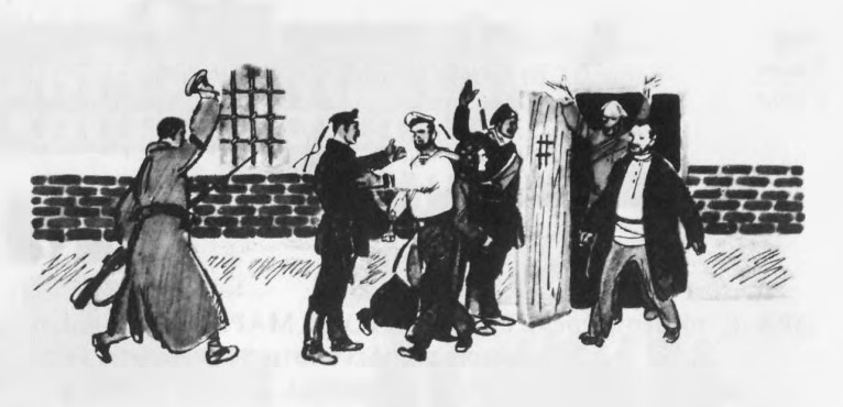 Την ώρα, που οι ευέλπιδες έτρεχαν στους διαδρόμους και στις σκάλες, οι τυπογράφοι τηλεφώνησαν στο επιτελείο της Κόκκινης φρουράς. Τρέχει ένα απόσπασμα από κοκκινοφρουρούς και πιάνει τους ευέλπιδες.