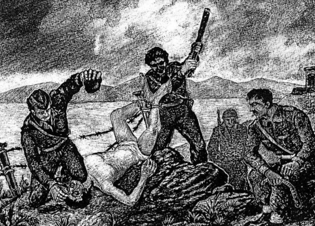 Κι η γη, σαν του χασάπη την ποδιά, ματοβαμμένη