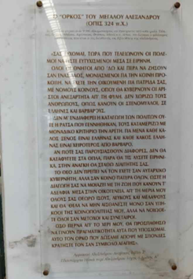 Στον όρκο του ο Μέγας Αλέξανδρος, συμπληρώνει «Για μένα κάθε καλός ξένος είναι Έλληνας, και κάθε κακός Έλληνας είναι χειρότερος από Βάρβαρο». Δεν αναφέρει όποιος δεν έχει επίσημα έγγραφα (διαβατήριο ή ταυτότητα) δεν είναι ευπρόσδεκτος πρόσφυγας· Αναφέρεται στη προσωπικότητα!
