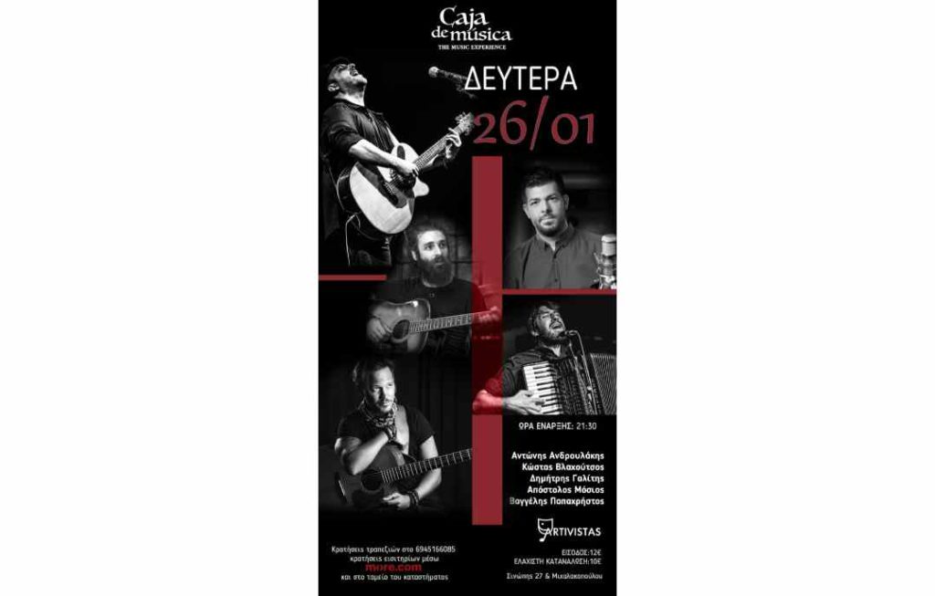 Με τους: Νίκο Τατασόπουλο, σολίστα του μπουζουκιού // Γρηγόρη Βασίλα, σολίστα του μπουζουκιού // Σταυρούλα Μανωλοπούλου στο τραγούδι // Στάμο Αναστόπουλο στην κιθάρα και στο τραγούδι // Φίλιππο Παχνιστή στο πιάνο // Γιώργο Βεντουρή στο κοντραμπάσο