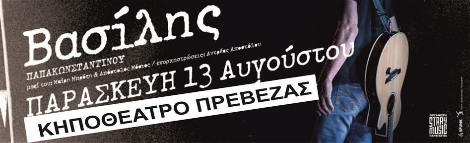 Επιτέλους ξανά μαζί! Μετά από ένα πολύ δύσκολο και μοναχικό χειμώνα, συναντιόμαστε όλοι μαζί στη συναυλία του Βασίλη την Παρασκευή 13 Αυγούστου στο Δημοτικό Κηποθέατρο Πρέβεζας.