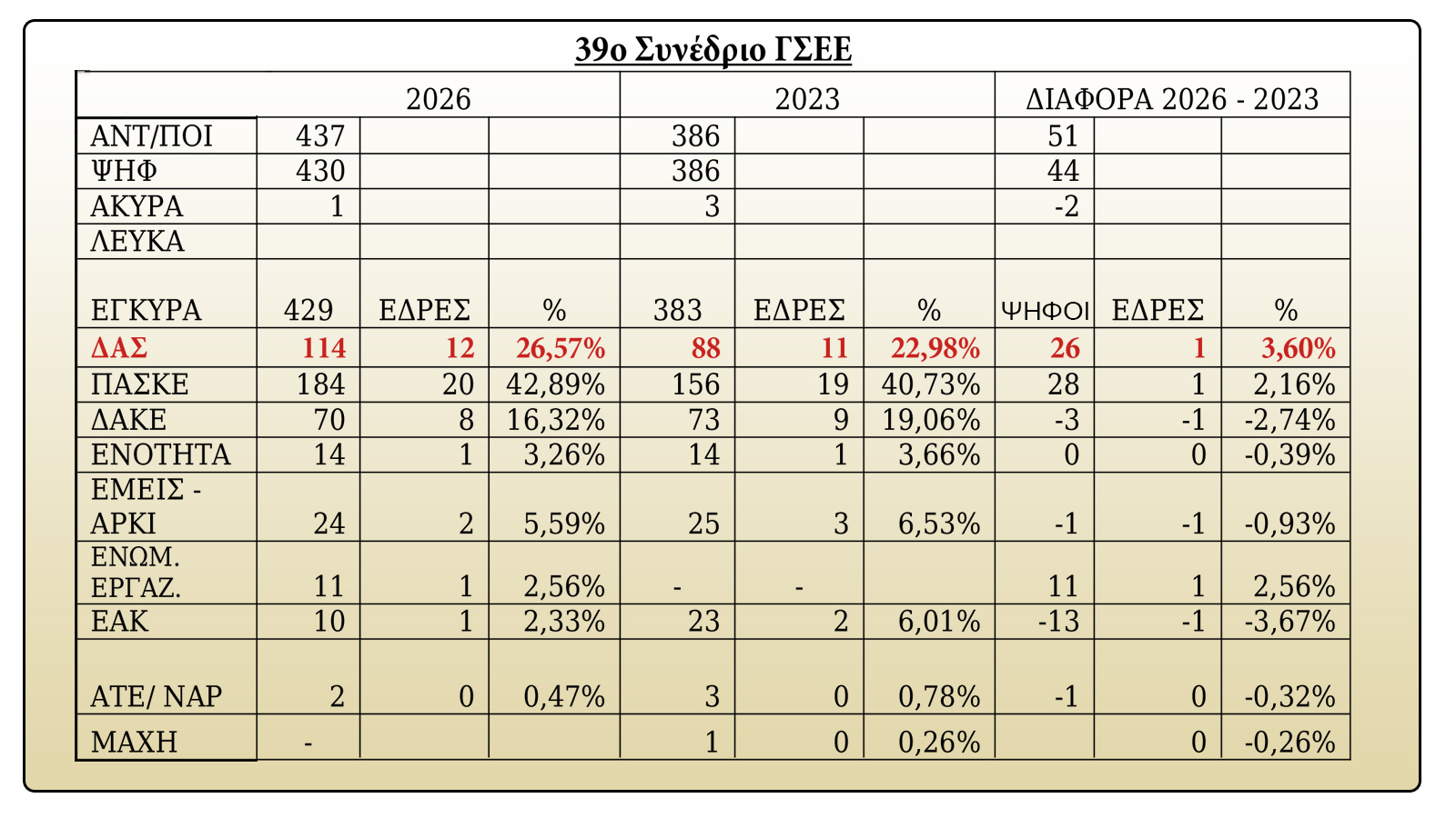 Μεγάλη άνοδος της ΔΑΣ στο 39ο Συνέδριο της ΓΣΕΕ (Αποτελέσματα)