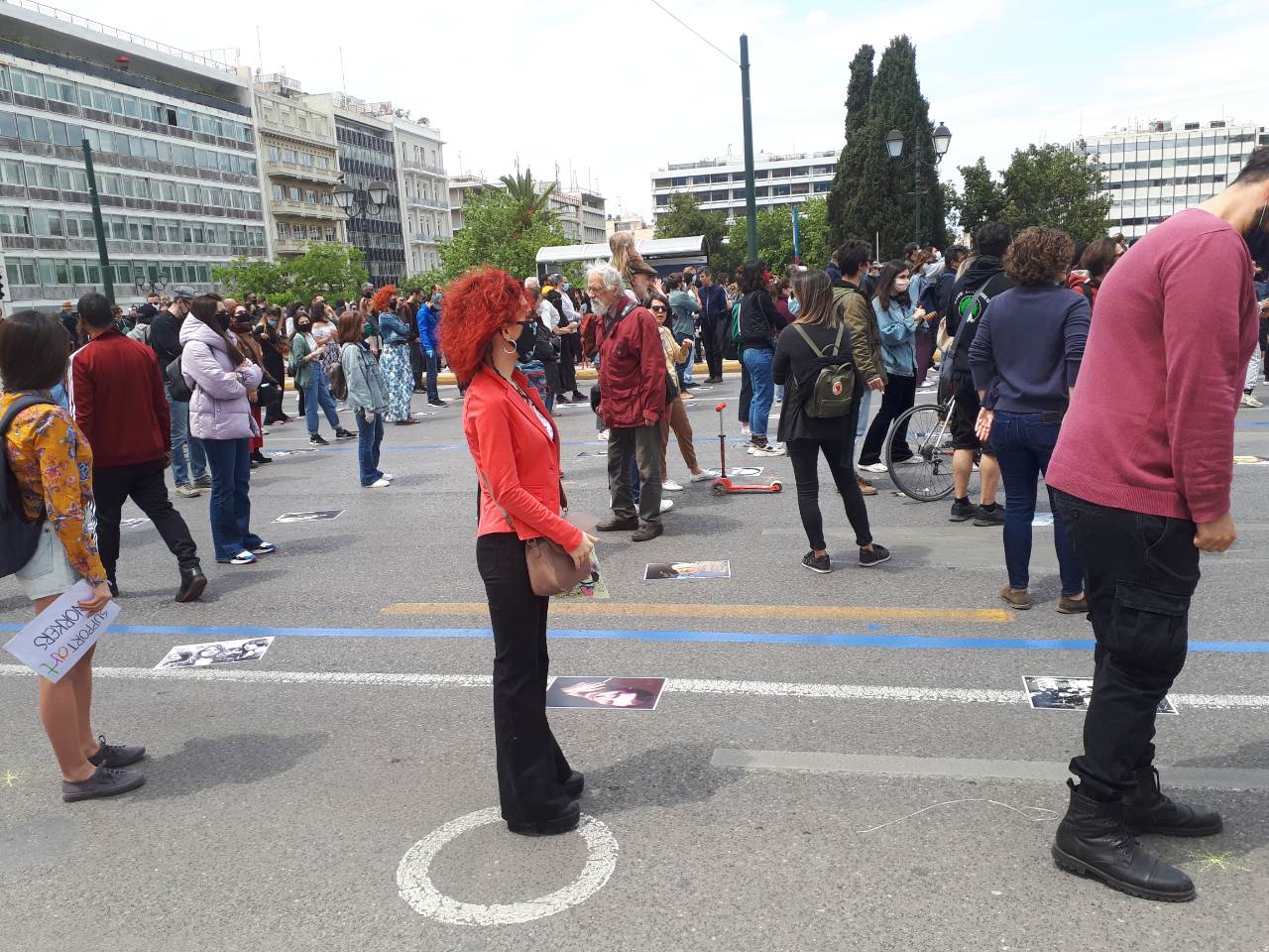 Πάθος, παλμός, φαντασία στα συνθήματα και στα δρώμενα, όλα όσα θα περίμενε δηλαδή κανείς από μια συγκέντρωση καλλιτεχνών. Δεμένα όλα αυτά και αξεδιάλυτα με δίκαιη οργή και αγανάκτηση για την κυβέρνηση, που εμπαίζει τον κλάδο -τον πρώτο που επλήγη από τα μέτρα ενάντια στη διάδοση του ιού και πιθανότατα ο τελευταίος που θα ξεκινήσει ξανά τη δραστηριότητά του.
