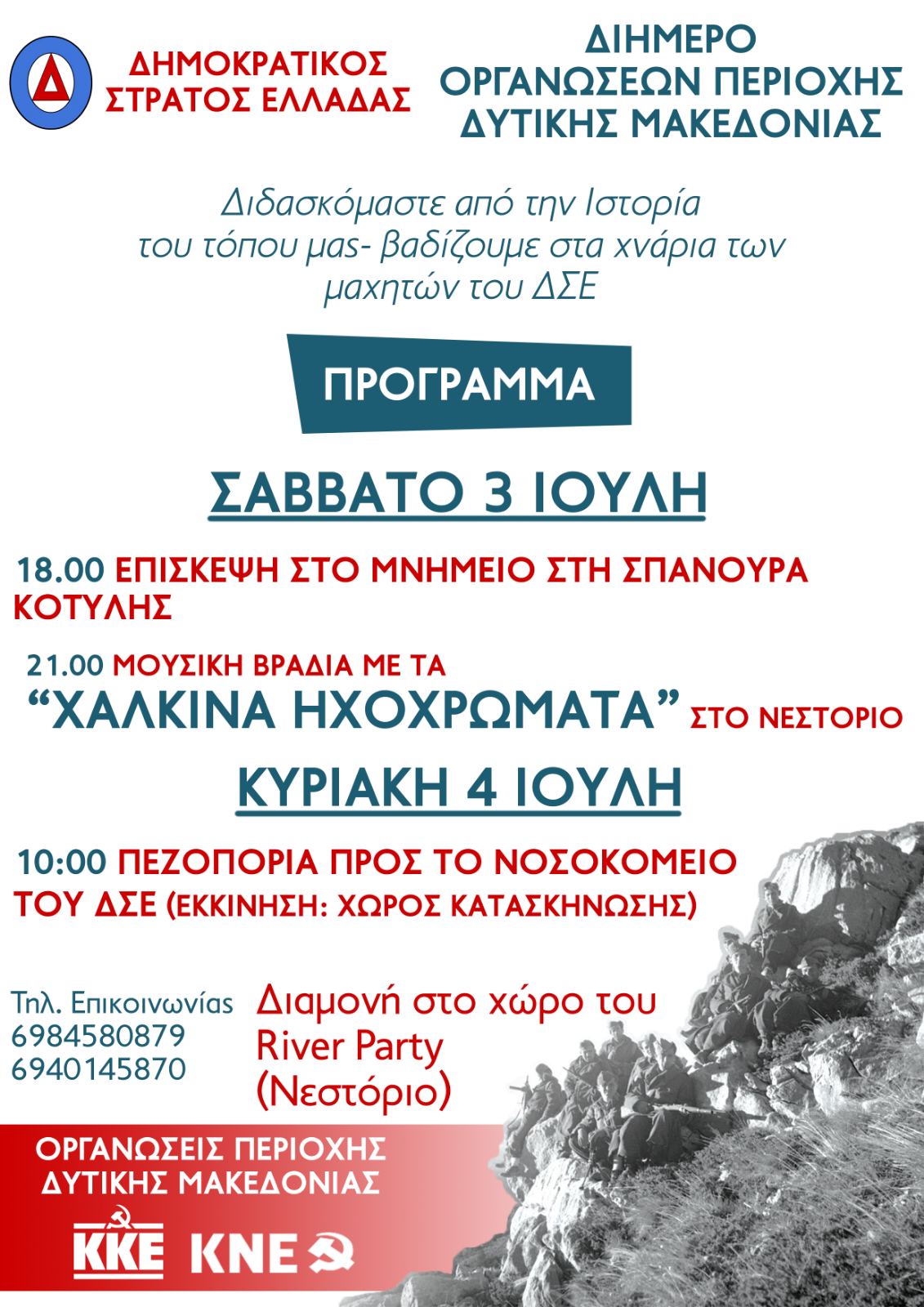 Οι Οργανώσεις του ΚΚΕ και της ΚΝΕ στη Δυτική Μακεδονία οργανώνουν και φέτος επίσκεψη σε ένα από τα πιο όμορφα αλλά και με την πιο βαριά ιστορία μέρη της περιοχής, στην περιοχή του Γράμμου στην Καστοριά, το Σαββατοκύριακο 3 και 4 Ιούλη, με κεντρικό σταθμό την επίσκεψη στο νοσοκομείο του ΔΣΕ.