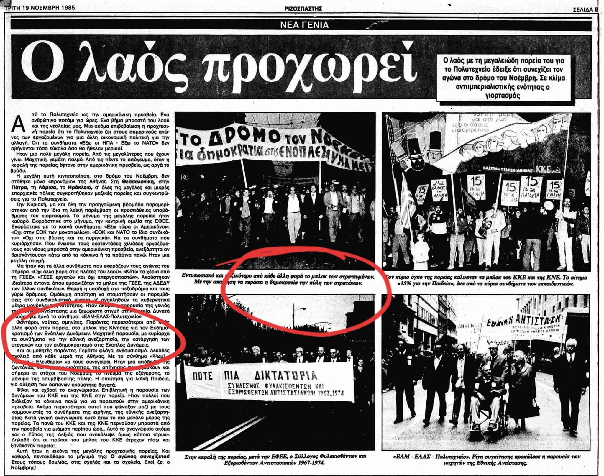 Ωραία χρόνια. Η ζωή συνεχίζεται. Κι η αντίσταση συνεχίζεται. Και κάθε φορά που βλέπω τα φανταράκια στην πορεία σκιρτά η ψυχή μου. Ήταν μια από τις πολύ όμορφες στιγμές της ζωής μας.