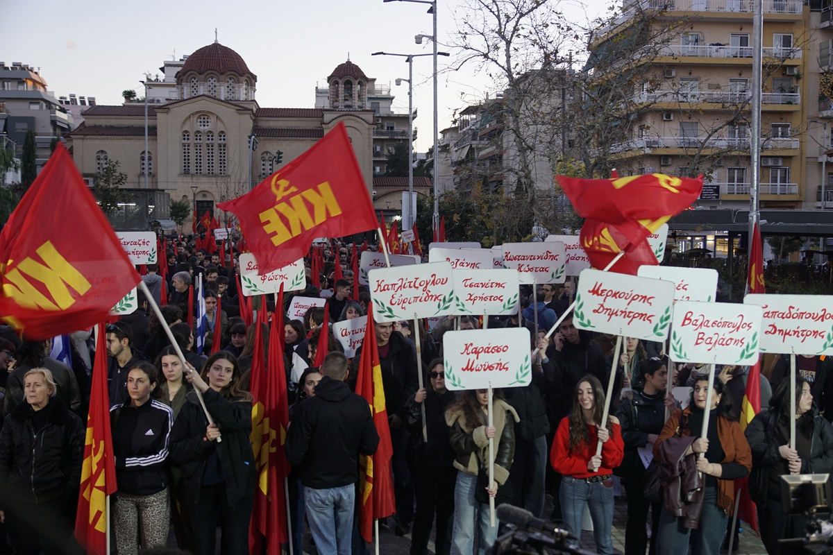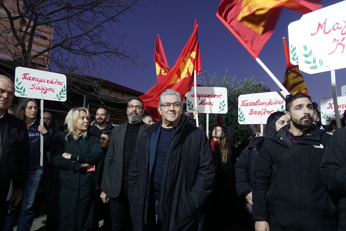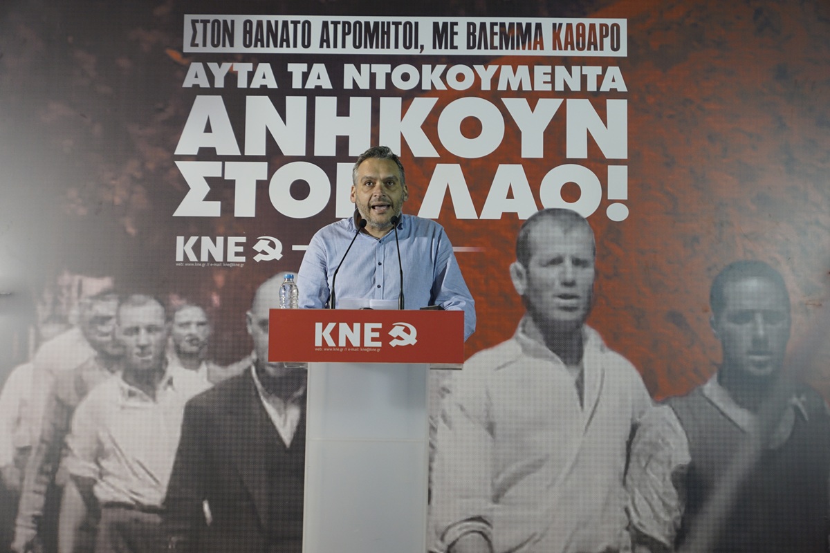 Εκεί ήταν και οι νέοι και οι νέες της ΚΝΕ, που με τις κόκκινες σημαίες στα χέρια να ανεμίζουν ψηλά πατώντας γερά στην τιμημένη ιστορία του Κόμματός μας συνεχίζουν. Διδάσκονται από το παράδειγμα των 200 και χιλιάδων ακόμα αγωνιστών. Εμπνέονται από το απαράμιλλο θάρρος τους να σταθούν μπροστά στο θάνατο με βλέμμα καθαρό, με το χαμόγελο στα χείλη, με την γροθιά υψωμένη.