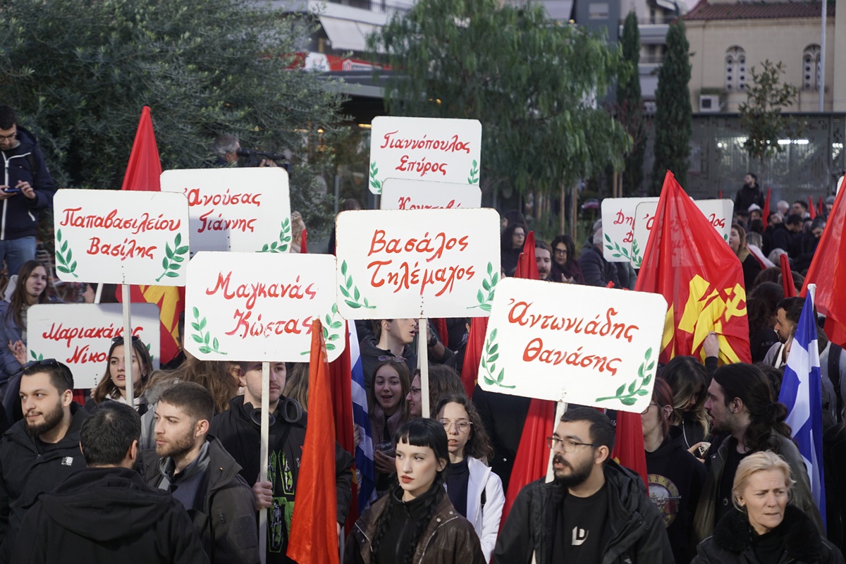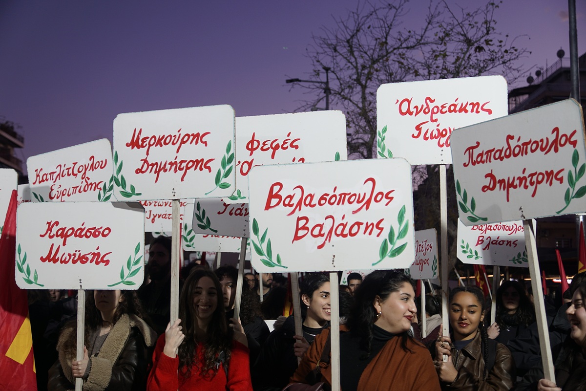 Εκεί ήταν και οι 200. Τα ονόματα τους, γραμμένα πάνω σε μικρές πικέτες κρατώνται ψηλά από τους νέους, κάνοντας πράξη τα λόγια του ποιητή… «Αν έχεις λείψει για ό,τι πρέπει, θα ‘σαι για πάντα μέσα σ’ όλα εκείνα που γι’ αυτά έχεις λείψει, θα ‘σαι για πάντα μέσα σ’ όλο τον κόσμο…».