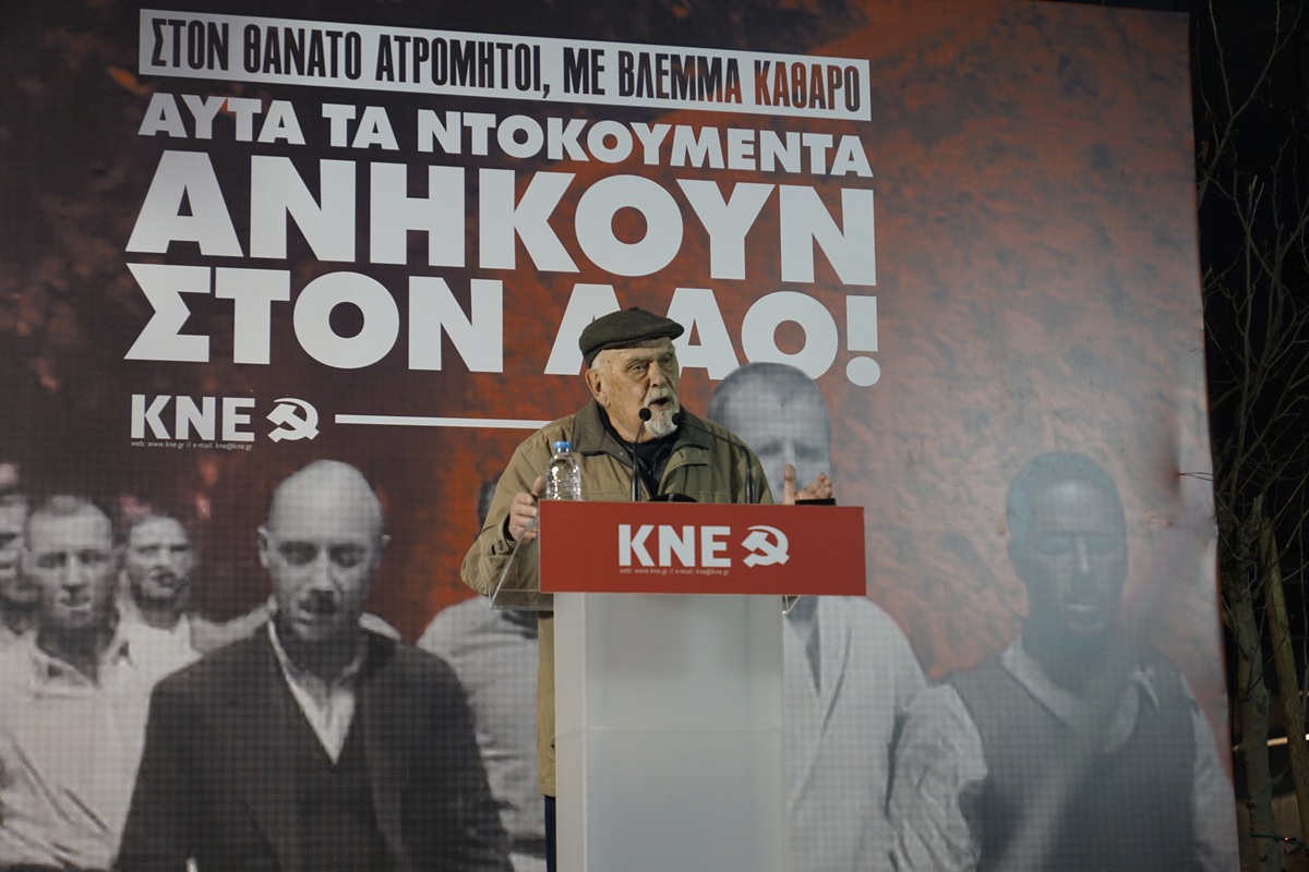 Όλες οι γενιές σμίξανε το απόγευμα της Τετάρτης 18/2 στην πλατεία «Παναγιώτη Μακρή», στη συγκέντρωση που διοργάνωσε η Οργάνωση Περιοχής Αττικής της ΚΝΕ με αφορμή τις άγνωστες μέχρι σήμερα φωτογραφίες που απεικονίζουν τις τελευταίες στιγμές των 200 κομμουνιστών που εκτελέστηκαν από τους ναζί κατακτητές την Πρωτομαγιά του 1944 και διατρανώνοντας ότι αυτά τα ντοκουμέντα ανήκουν στο λαό.
