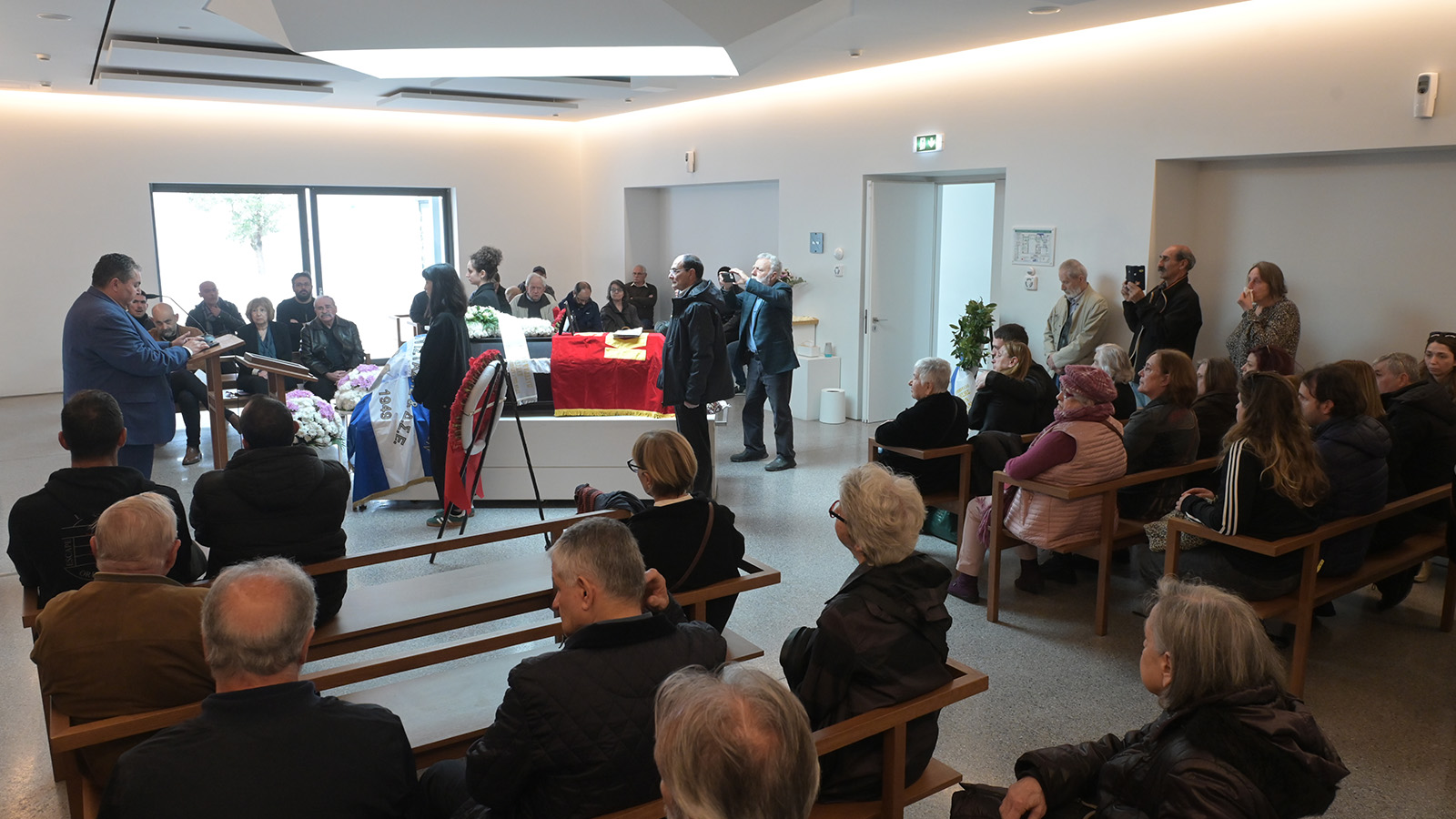 Σε κλίμα βαθιάς θλίψης και συγκίνησης πραγματοποιήθηκε σήμερα στο αποτεφρωτήριο στη Ριτσώνα, η πολιτική κηδεία του συντρόφου Χρήστου Τσιντζιλώνη (ΦΩΤΟ)