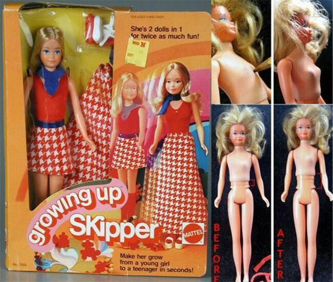Για την Skipper,  η εταιρία πέρα απο άθλιο όνομα, επιφύλλασε και άθλια εφηβεία.  Εμφανίστηκε το 1964 και περίπου το 1975, το τμήμα μάρκετινγκ αποφάσισε να την κυκλοφορήσει πλέον σαν έφηβη κουκλίτσα..Και πήγαν όλα τόσο λάθος. Η ιδέα ήταν πως με ένα απλό γύρισμα του χεριού το μικρό κορίτσι μεταμορφωνόταν σε 16χρονο με στήθος.. Ήδη πονά το χέρι μου για το πόσα κοριτσάκια εκείνο το καιρό το δοκίμασαν σε φίλες, ξαδέρφες και αδερφές.