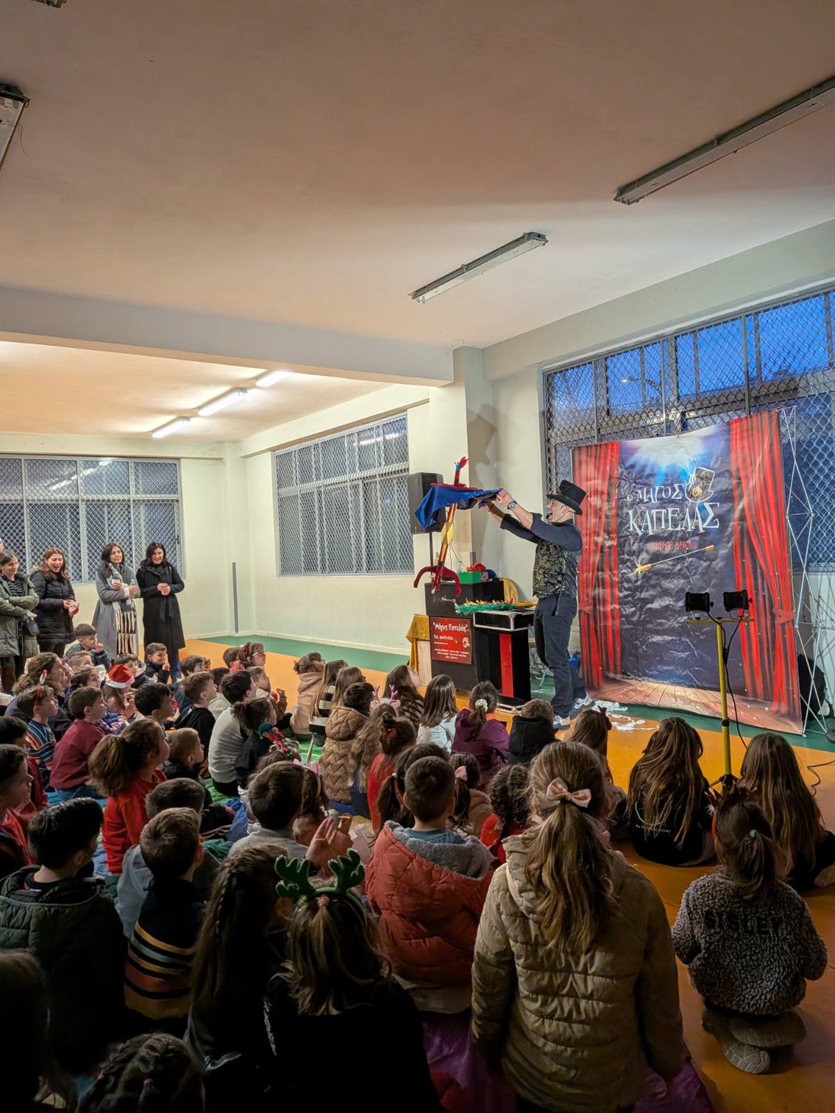 Τα παιδιά διασκέδασαν κάνοντας χειροτεχνίες, τραγουδώντας, παίζοντας, γελώντας, μαζί με τους γονείς τους. Μικροί και μεγάλοι ξετρελαθηκαν με το μαγο-καπελα, σε μια παράσταση που τους καθήλωσε και τους ξεσήκωσε όλους. Φάγαμε, ήπιαμε, από όλες τις λιχουδιές που είχαν ετοιμάσει και με αγάπη δωρίσει Φούρνοι της πόλης. Ανταμώσαμε συνάδελφοι σε πιο χαλαρές στιγμές. Τα παιδιά είχαν την ευκαιρία να κάνουν face painting, σε χριστουγεννιάτικη διαθεση. Το κυνήγι χαμένου θησαυρού έκλεψε την παράσταση, όπου οι μικροί “βοηθοί” του Αη Βασίλη βρήκαν τα δώρα και ξεκλειδώσαν το σύνθημα “Άλλαξε τον κόσμο – το έχει ανάγκη – με αγάπη – με αλληλεγγύη – με ειρήνη.