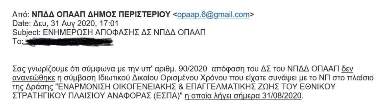 - Μετά από μισή ώρα οι εργαζόμενοι δέχτηκαν στο mail τους (!!!) το εξής κείμενο: