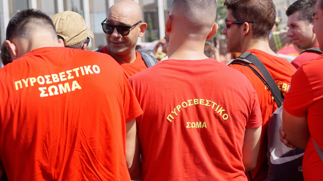 Με την μαχητική του παρουσία του ξεχώρισε το μπλοκ των εκατοντάδων συμβασιούχων πυροσβεστών που δίνουν αγώνα για τη μονιμοποίησή τους.