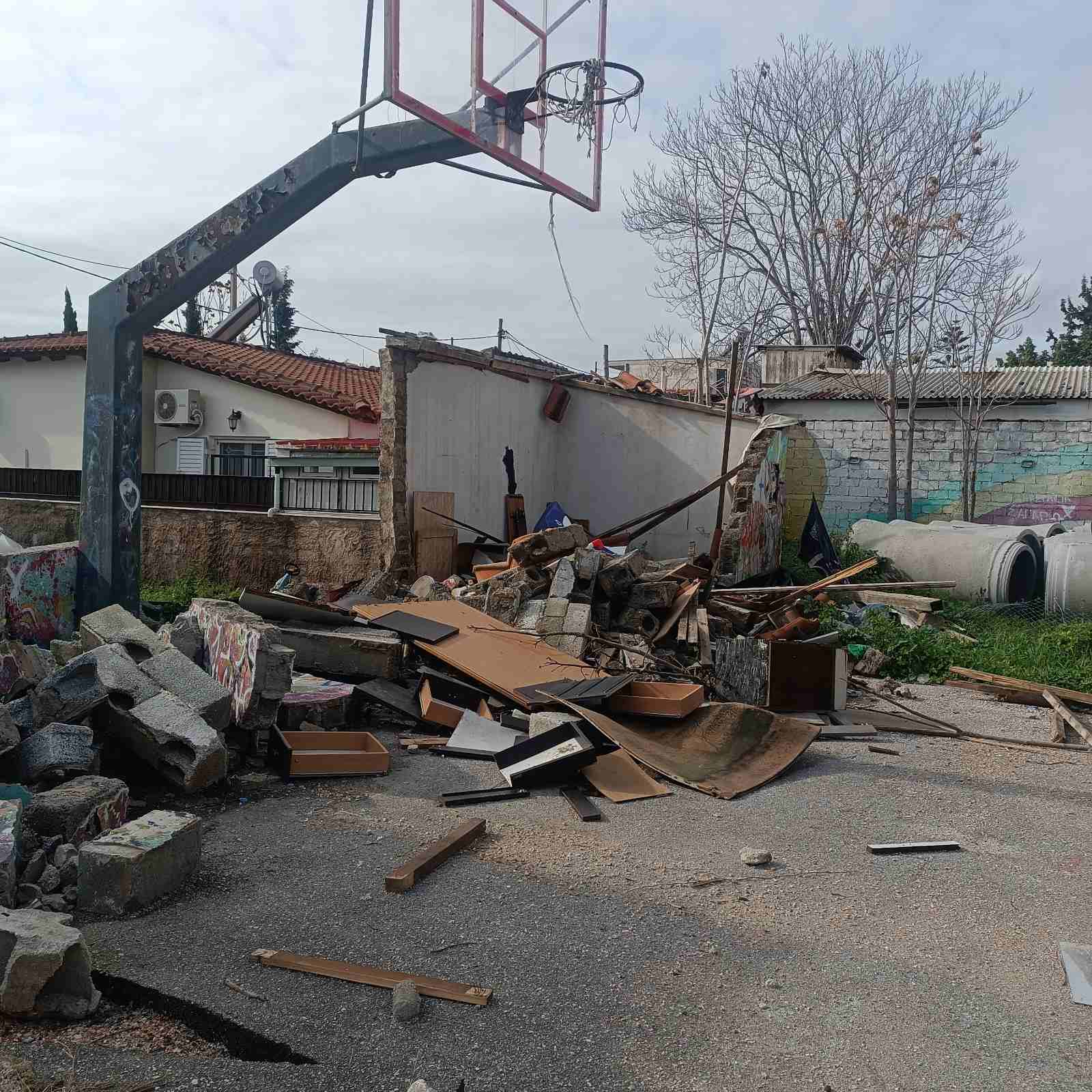 Απέναντι από την παιδική χαρά έχει δημιουργηθεί ένας παράνομος σκουπιδότοπος καθώς και χώρος απόθεσης μπάζων, έχουν επιβληθεί πρόστιμα αλλά η κατάσταση συνεχώς επιδεινώνεται. Έφτασαν στο σημείο να  έχουν καταπατήσει ολόκληρο δρόμο με μπάζα και μηχανήματα!!