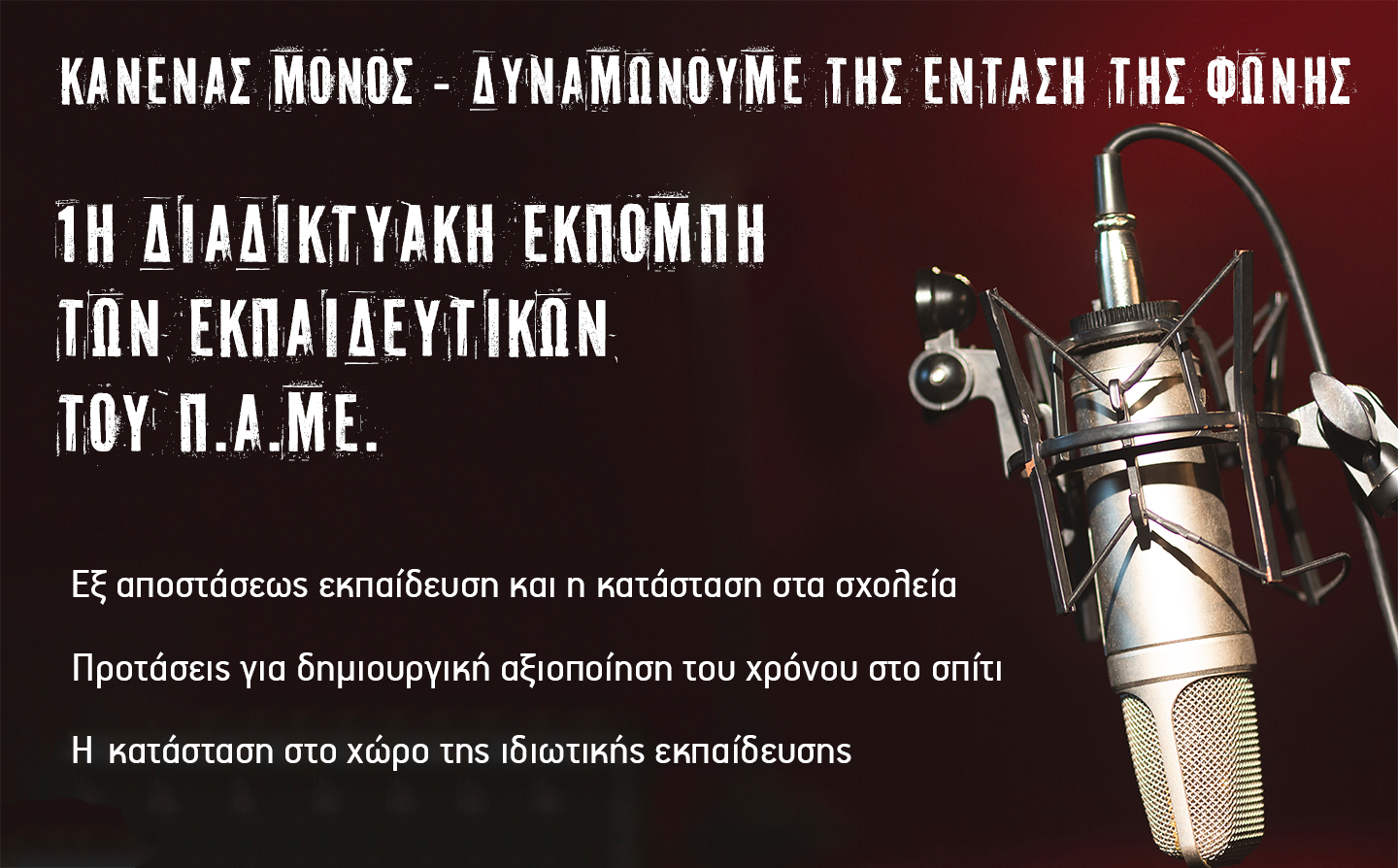 Μάθημα εκτός …έδρας – Στον “αέρα” η πρώτη διαδικτυακή εκπομπή των εκπαιδευτικών του ΠΑΜΕ