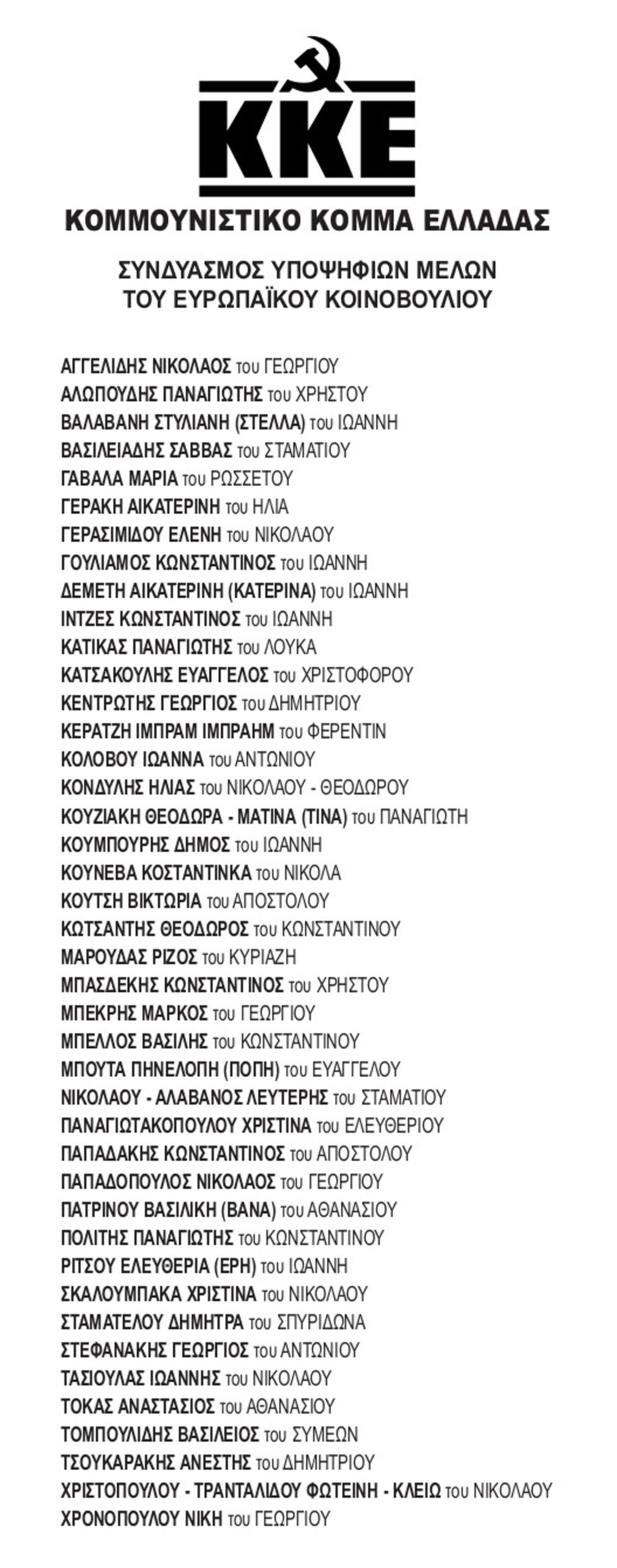Το ψηφοδέλτιο του ΚΚΕ έχει πάνω το γνωστό έμβλημά του με τα τρία γράμματα και το σφυροδρέπανο, όπως φαίνεται και στην εικόνα. Από κάτω γράφει «Κομμουνιστικό Κόμμα Ελλάδας» και τίποτα περισσότερο ή λιγότερο.