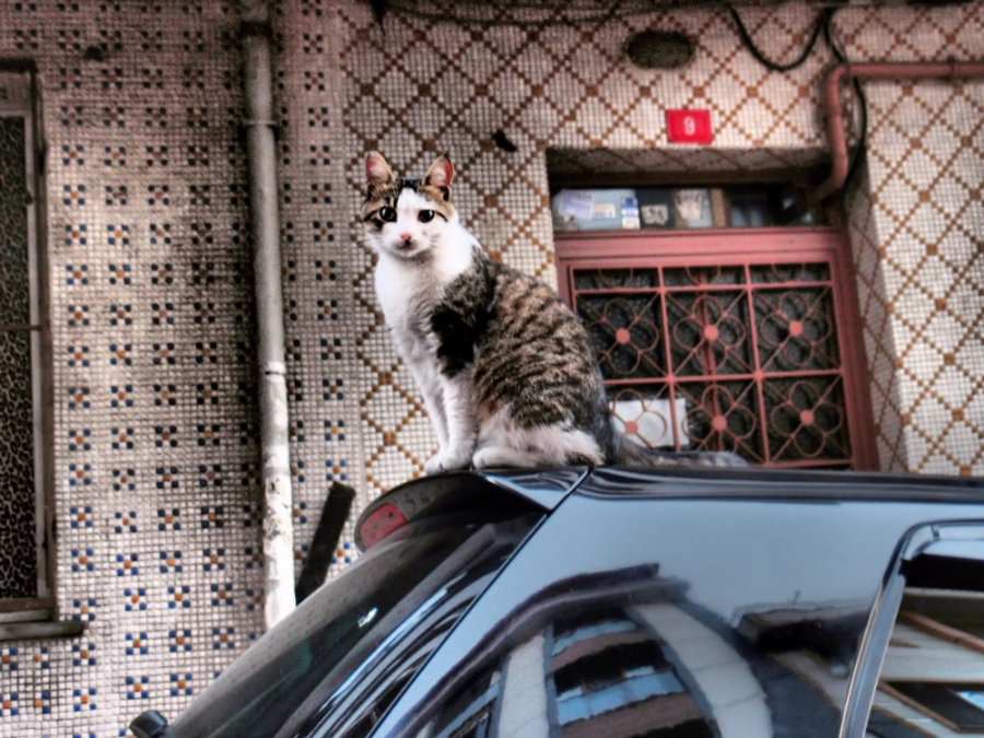 Μα, θα πει κανείς, αυτό συμβαίνει με τις γάτες παντού. Όμως όχι, οι γάτες στην πόλη δεν είναι ένα κατοικίδιο που παλεύει να επιβιώσει μέσα στον αστικό ιστό, δεν είναι ένα πρόβλημα που ψάχνει λύση, είναι απόλυτα εξοικειωμένες και εναρμονισμένες με το περιβάλλον και τους ανθρώπους, δεν κρύβονται κάτω από τα παρκαρισμένα αυτοκίνητα τρομαγμένες, δεν ψάχνουν στα σκουπίδια να φάνε, δεν είναι εξαθλιωμένες και άγριες. Έχουν την φροντίδα των κατοίκων της πόλης , υπάρχουν μπολάκια και σπιτάκια παντού, τροφή στα πεζοδρόμια αλλά και στις εισόδους των πολυκατοικιών. Πολλά μαγαζιά υιοθετούν τεκνοθετούν γάτες οι οποίες γίνονται συνέταιροι με τους ιδιοκτήτες: “εσύ θα με ταΐζεις και εγώ θα αράζω εδώ στην πόρτα να σου φέρνω κόσμο”. Αλήθεια τι το ενδιαφέρον μπορεί να έχει μία γάτα που κοιμάται; Και όμως οι γάτες φέρνουν κόσμο.