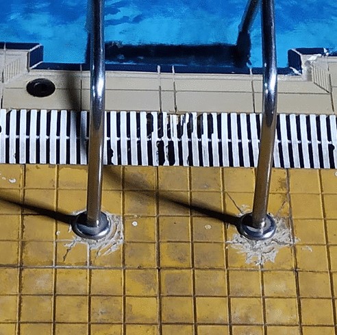 Θα πρέπει, αν δεν σας είναι ήδη γνωστό και κλείνετε τα μάτια, να γνωρίζετε ότι αρκετά πλαστικά αποστράγγισης περιμετρικά της πισίνας έχουν σπάσει με αποτέλεσμα να υπάρχουν συνεχείς τραυματισμοί τόσο των μικρών παιδιών όσο και των ενηλίκων κολυμβητών (τα πόδια των παιδιών αλλά και των μεγάλων να μπαίνουν μέσα και είτε από τα σπασμένα πλαστικά (λειτουργούν σαν μαχαίρια), είτε από τα υπόλοιπα υλικά που υπάρχουν εκεί, να δημιουργούνται από μικρές έως μεγάλες εκδορές, μυϊκοί τραυματισμοί κλπ.).
