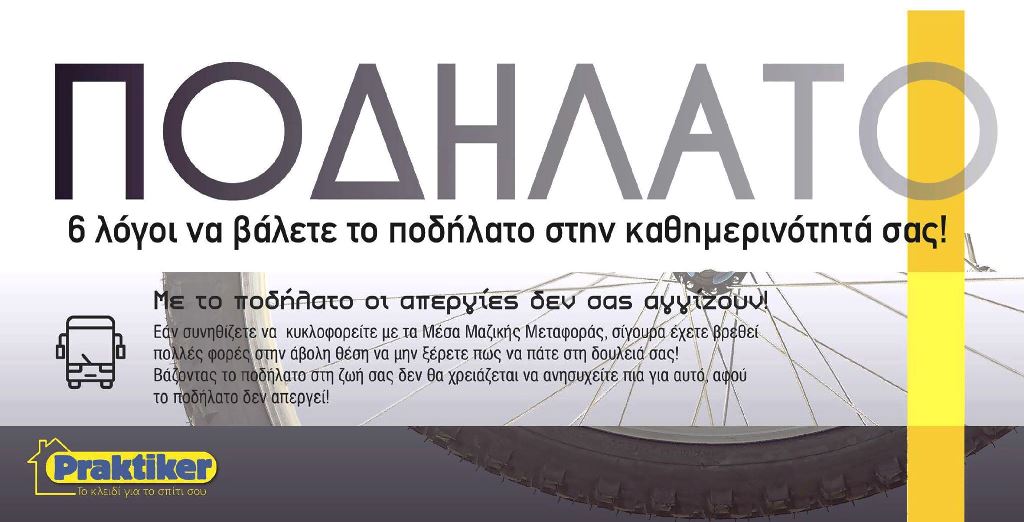 Μπορεί να βιώνουμε μια ζωή-ποδήλατο, χωρίς εργατικά δικαιώματα και δικαίωμα στην ελπίδα (που έρχεται), αλλά δεν πρέπει να απελπιζόμαστε. Γιατί η Praktiker είναι εδώ, σκέφτεται πάντα το καλό μας και μας διαφημίζει τα νέα της ποδήλατα. Τα οποία καλούμαστε να προτιμήσουμε, γιατί είναι ο πιο φτηνός κι ασφαλής τρόπος μεταφοράς, μας βοηθάνε να γνωρίσουμε την πόλη μας, είναι φιλικά προς το περιβάλλον. Αλλά προπαντός γιατί δεν απεργούν και δεν πρόκειται να μείνουμε μπουκάλα, σε μια μέρα απεργίας…