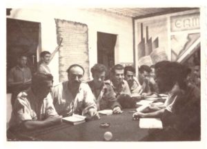 Για να τους υποχρεώσουμε να μας λιγοστέψουνε τους περιορισμούς κάμαμε αποχή από ένα συσσίτιο και πετάξαμε τις καραβάνες μας στην άκρη. Ανάμεσά μας ήταν ένας παπάς, με πλούσια γενειάδα και χοντρός, που ένας τον παρατσουκλωσε «βατραχόψαρο». Ο διοικητής εκεί ήταν λίγο μπεκροκανάτα. Έτσι λοιπόν μέσα απ’ αυτό το κωμικοτραγικό περιβάλλον, ένας συναγωνιστής ενεπνεύσθη και την ώρα που όλοι στο νοσοκομείο του χανε και μεις απεργούσαμε, στάθηκε στη μέση του θαλάμου, πήρε στάση επίσημη και με στόμφο πολύ μας απάγγειλε ένα ποίημα, που εσκάρωσε απ’ τα γεγονότα και που το αντιγράφω προς χάρη της ιστορίας: