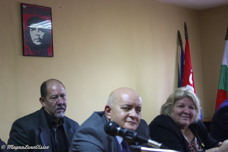 Στελέχη του Κουβανικού Ινστιτούτου Φιλίας των Λαών, ο Πρέσβυς της Κούβας στη Βουλγαρία, η Αλέιδα Γκεβάρα μαζί με το μέλος της ΚΕ της Ένωσης Κομμουνιστών Βουλγαρίας Πέτια Παλικρούσεβα και στελέχη του Συνδέσμου Βουλγαρο-Κουβανικής Φιλίας