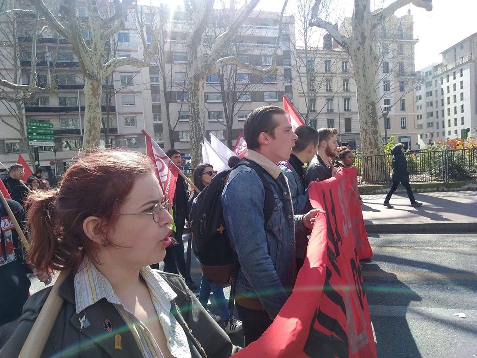 Αξίζει μια μικρή αναφορά στην κομμουνιστική νεολαία της Λυών που έδωσε για ακόμα μια φορά,βροντερό παρόν στην απεργιακή κινητοποίηση της 19 Μαρτίου, μαζί με τους εργαζόμενους που συμμετείχαν στην απεργία στην πόλη της Λυών.