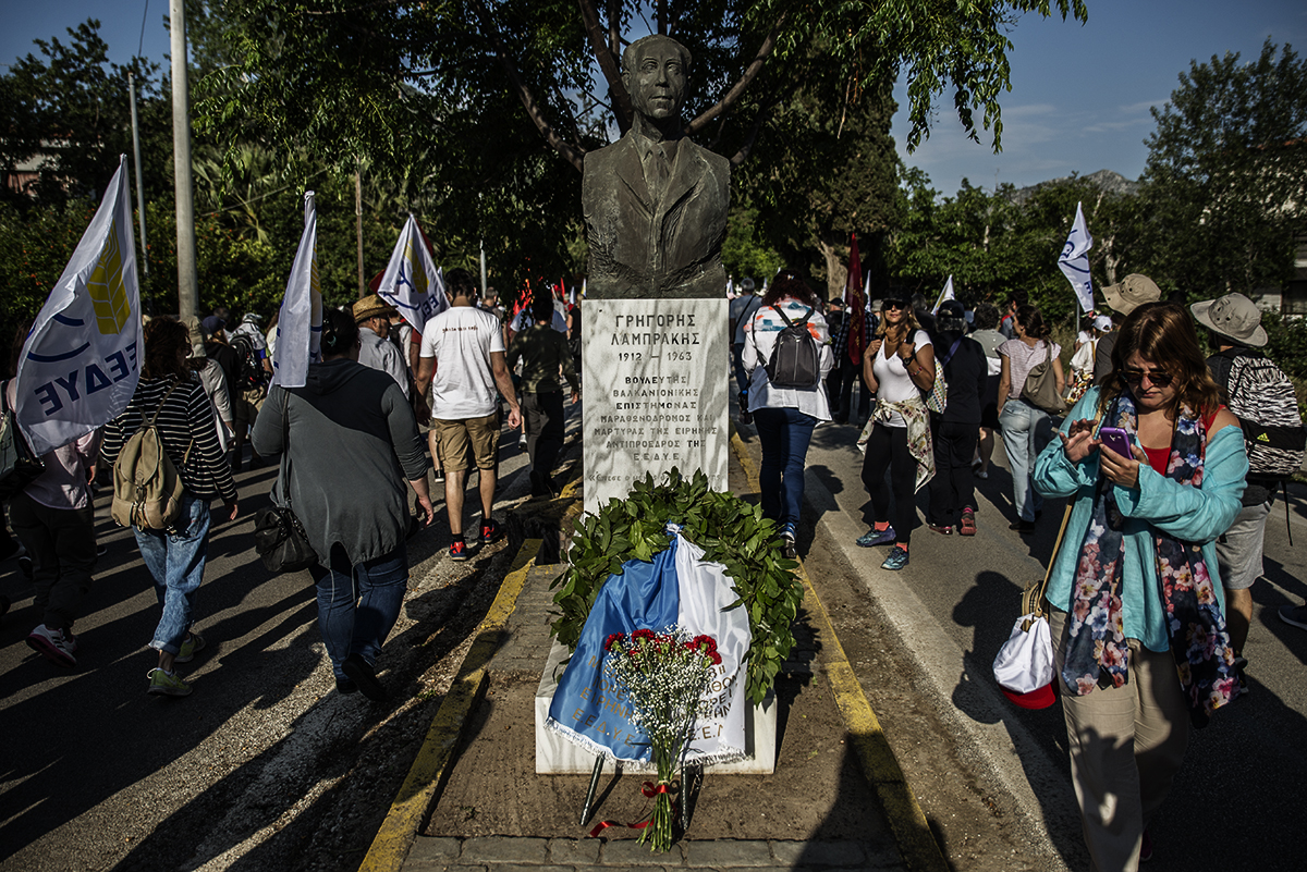 Παρότι ήμουνα στις σκέψεις μου με οδηγό και ρυθμό τα τραγούδια που είχαμε συντροφιά από το βαν. Ήμουνα τόσο νηφάλια και ήρεμη ξέροντας πως δίπλα μου είχα τόσο κόσμο που πορευόμασταν μαζί, ο καθένας με τις φάσεις και τις αντιφάσεις του, δίπλα μας και ο ένας από τους δυο γιούς του Λαμπράκη, καθώς και ο εγγονός του, Γρηγόρης. Στην τελική σούμα θέλω να πιστεύω πως έχουμε τον ίδιο στόχο. Πως θα αγωνιστούμε ώστε αν όχι σε αυτή τη ζωή που ζούμε, στις επόμενες γενιές να μην υπάρχει εκμετάλλευση ανθρώπου από άνθρωπο.