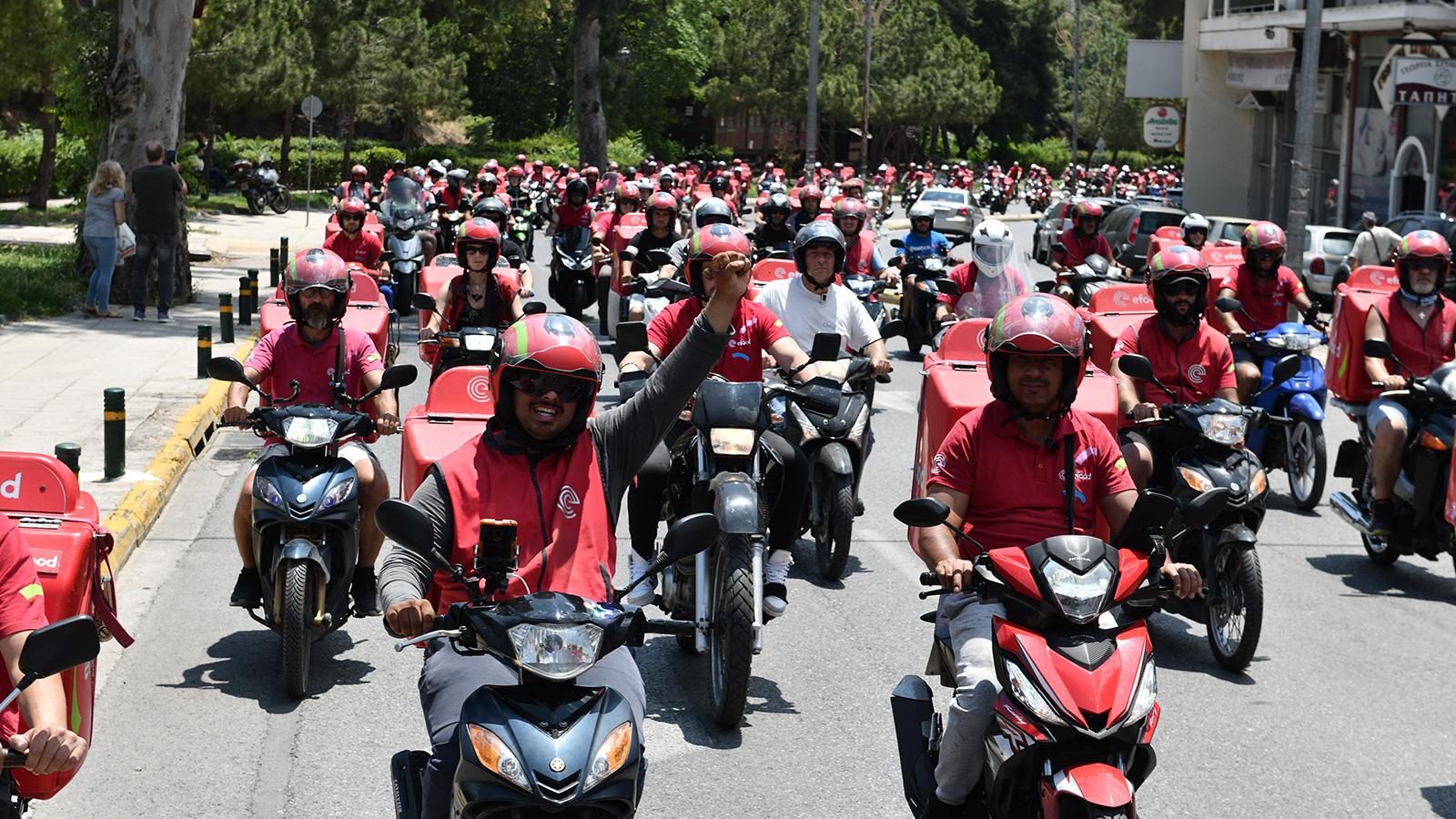 Με υψωμένες γροθιές και με συνεχή κορναρίσματα οι εργαζόμενοι της efood έδωσαν αποφασιστική απάντηση στην προσπάθεια της εταιρείας να προωθήσει το μοντέλο απασχόλησης του «συνεργάτη». Oι διανομείς αποφάσισαν να συνεχίσουν τις κινητοποιήσεις τους με νέα απεργία την Παρασκευή 24 Ιούνη.
