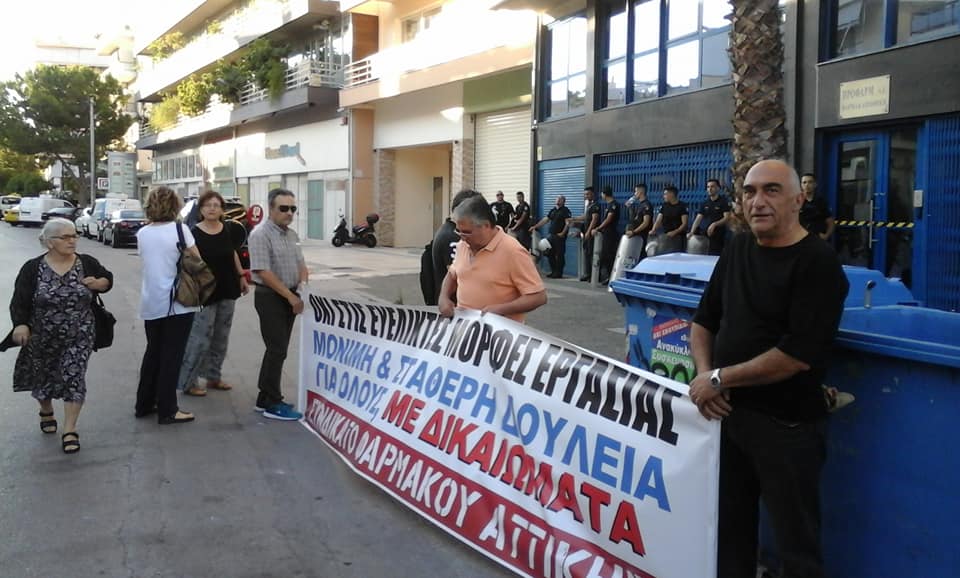 Οι φαρμακευτικές θέλουν να επιβάλουν εξαήμερη εργασία (δουλειά τα Σάββατα) και η κυβέρνηση βάζει πλάτη, στέλνοντας τα ΜΑΤ να αντιμετωπίσουν τη στάση εργασίας των εργαζομένων.