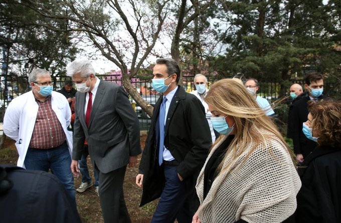 Πάνω είδατε τους “ανεύθυνους υγειονομικούς”. Κάτω βλέπετε την “υπεύθυνη πολιτική ηγεσία” κατά την πρωινή της επίσκεψη-σόου σε Νοσοκομείο.