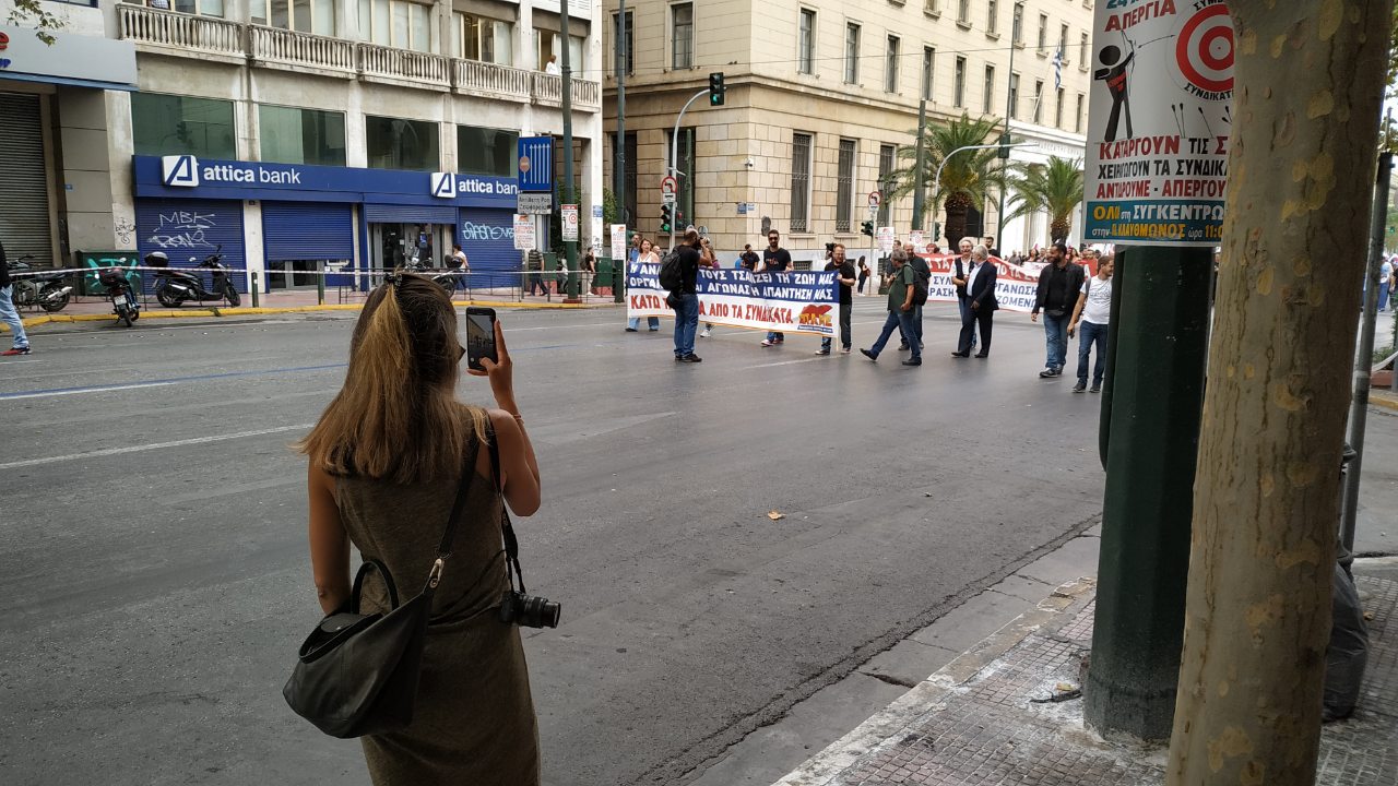 Και κάπου στο βάθος, προς την Κλαυθμώνος, υπάρχει μια μικρή συγκεντρωσούλα εργατοπατέρων