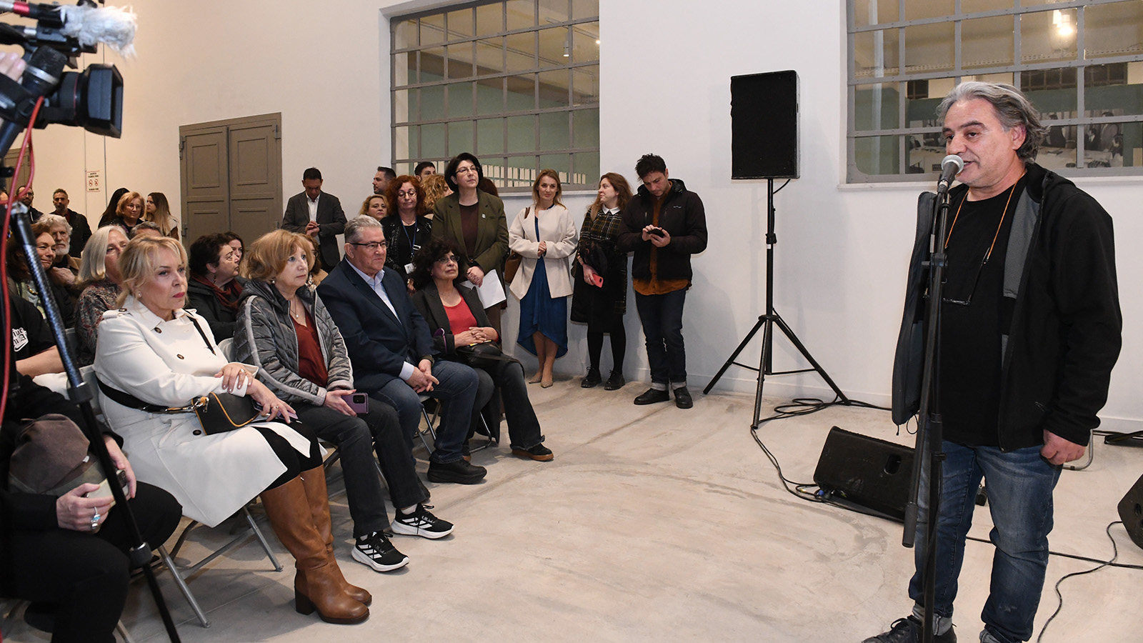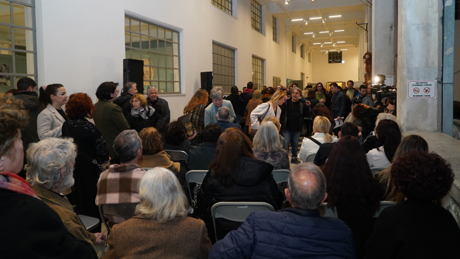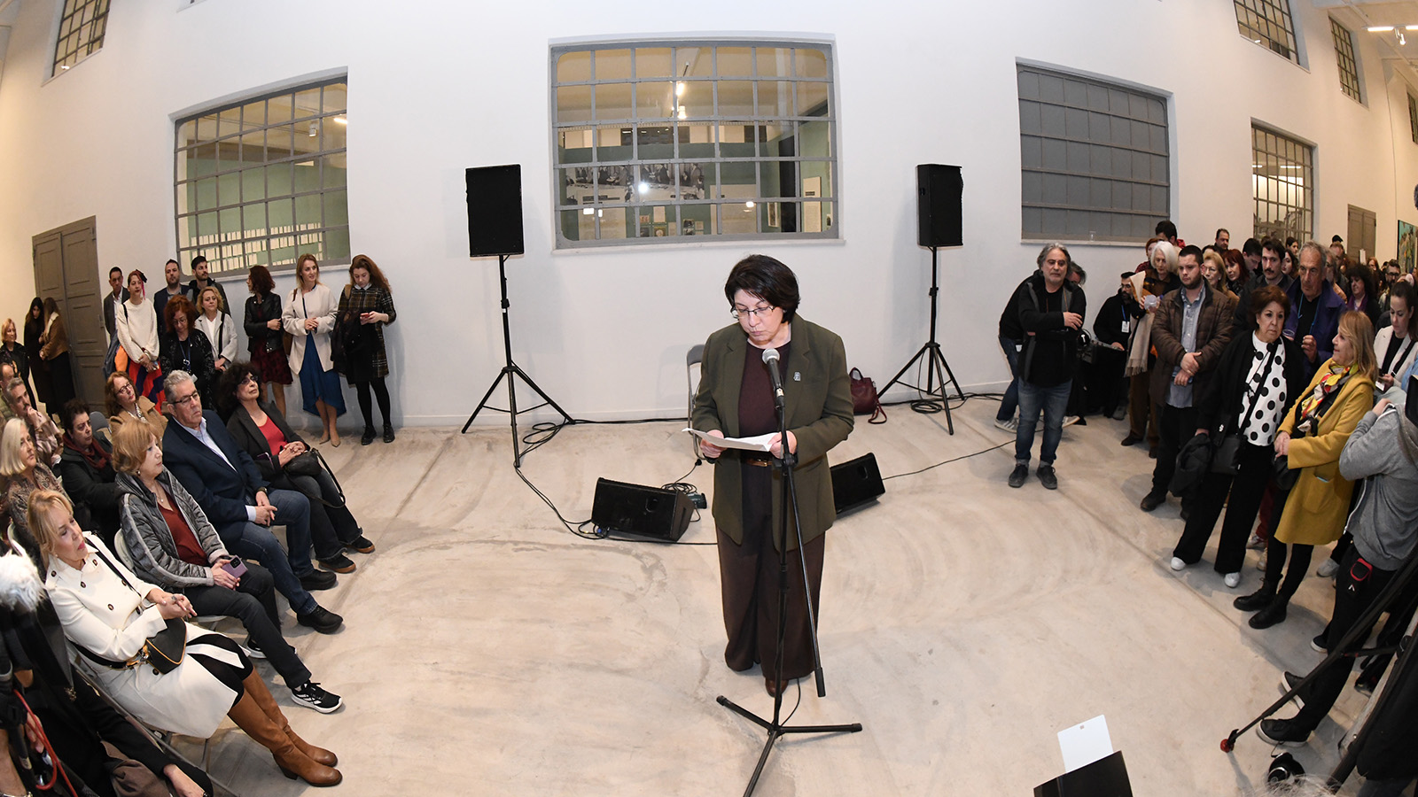«Με πολλή μεγάλη χαρά σας καλωσορίζουμε και σας υποδεχόμαστε στα εγκαίνια της έκθεσης εικαστικών έργων δημιουργών από όλη την Ελλάδα που πραγματοποιείται εδώ στο Καπνεργοστάσιο με κοινή πρωτοβουλία του Εικαστικού Επιμελητηρίου και της Ομοσπονδίας Γυναικών Ελλάδας.