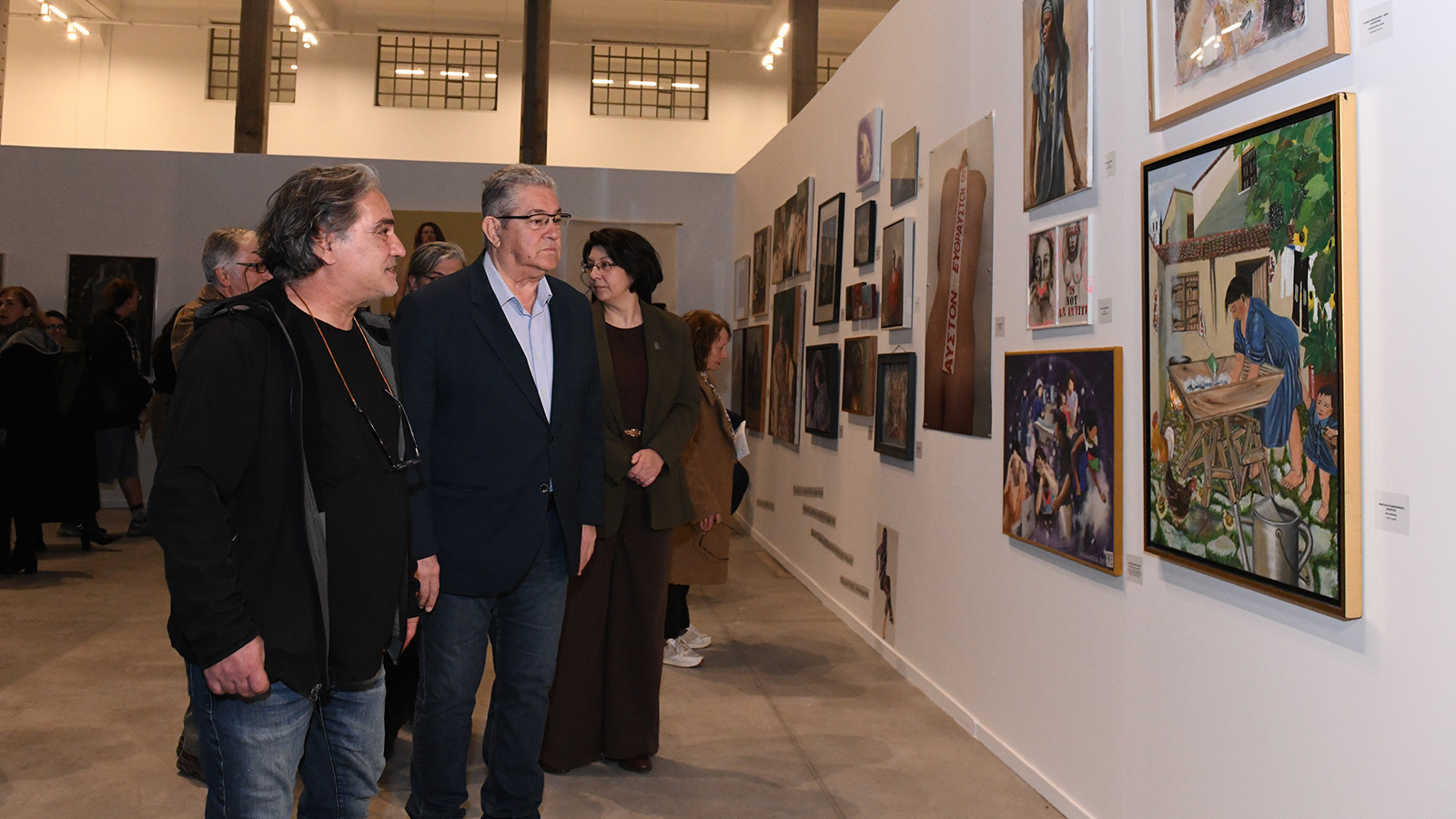 Με μεγάλη επιτυχία και μαζική προσέλευση πραγματοποιήθηκαν τα εγκαίνια της εικαστικής έκθεσης που συνδιοργανώνουν το Επιμελητήριο Εικαστικών Τεχνών Ελλάδος και η Ομοσπονδία Γυναικών Ελλάδας, με τίτλο «Πίσω από τη βιτρίνα: γυναίκες της δουλειάς και της ζωής».