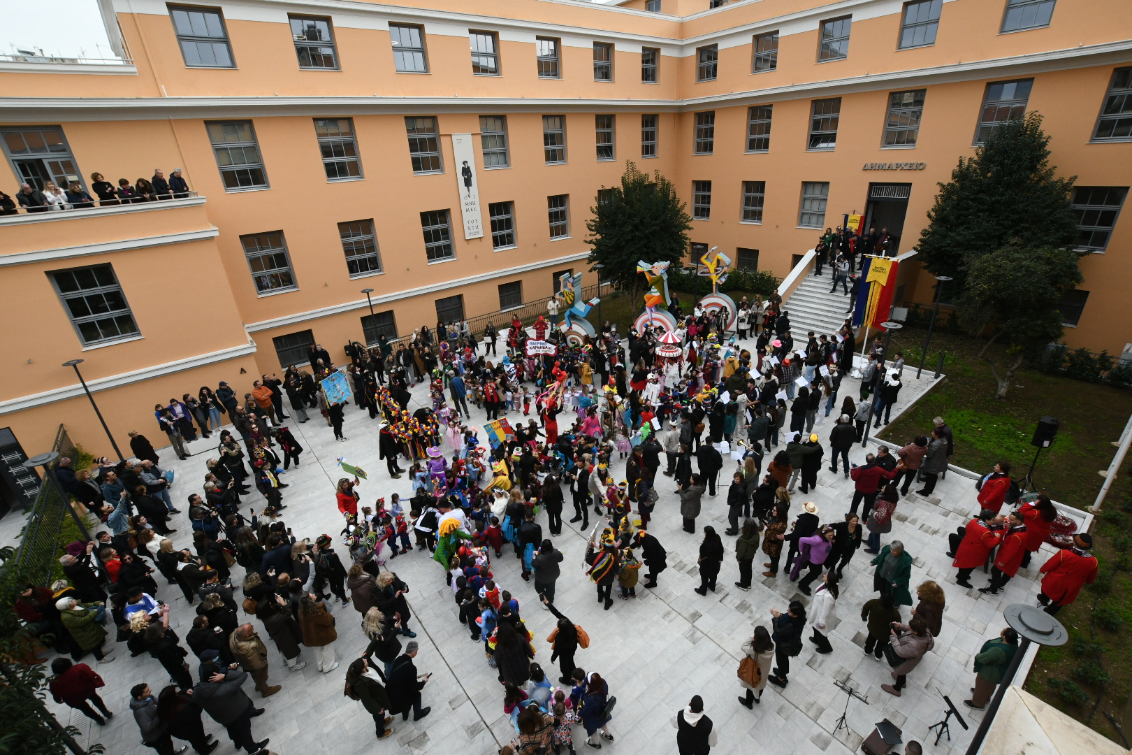 Το λάβαρο του Πατρινού Καρναβαλιού 2026 θα παραμείνει αναρτημένο στο Δημαρχείο μέχρι το τέλος των εκδηλώσεων (22 Φεβρουαρίου).