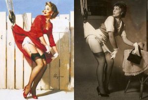 Η δεκαετία του ’50 της βρίσκει πιο σέξι. Οι εικόνες έχουν γίνει πιο τολμηρές. Το ιδανικό σώμα, πιο καμπυλόγραμμο, αλλά η ανδρική φαντασία δεν βολεύεται πλέον με ψεύτικες ζωγραφισμένες γυναίκες που δεν υπάρχουν στην πραγματικότητα. Θέλει πραγματικές. Στην πραγματικότητα, κατά την διάρκεια του πολέμου είχαν εμφανιστεί οι πρώτες φωτογραφίες pin up κοριτσιών, ενώ από τα πρώτα χρόνια πολλοί pin up καλλιτέχνες χρησιμοποιούν αληθινά μοντέλα τα οποία τα μετέτρεπαν σε ζωγραφιστές γυναίκες. Η δεκαετία του ’50 όμως ήθελε το 100%.