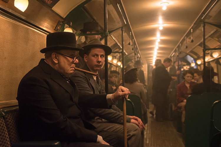 Ένα άλλο στερεότυπο ιστορικών δραμάτων που εδώ φτάνει σε κωμικές ακρότητες, είναι η εμφάνιση ενός πλήθους ξένων που αναγνωρίζουν το διάσημο της υπόθεσης και του αυτοσυστήνονται έτοιμοι να δηλώσουν τη στήριξή τους. Κατά μία έννοια, η σκηνή στο μετρό είναι η πιο ενδιαφέρουσα της ταινίας, κι αυτό λέει πολλά για το πόσο συναρπαστικό είναι το υπόλοιπο. Έχω διαβάσει αντικρουόμενες απόψεις για το κατά πόσον ο Τσώρτσιλ χρησιμοποιούσε όντως το μετρό στις μετακινήσεις του, σε κάθε περίπτωση η ιδέα και μόνο ότι έκανε σφυγμομέτρηση υπέρ ή κατά του πολέμου ρωτώντας τους επιβάτες είναι αδιανόητα κιτς, η εκτέλεσή της ακόμα περισσότερο. Το βλέμμα ξελιγωμένης γκρούπι αντιγράφουν πιστά ένας-ένας οι επιβάτες του βαγονιού (μόνο ένα μωρό εμφανίζεται ατάραχο στη θέα του ηγέτη, για να εισπράξει ως δίκαιη τιμωρία τον καπνό απ’ το πούρο του Τσώρτσιλ καταπάνω του), οι οποίοι ενθουσιασμένοι συστήνονται στον πρωθυπουργό και δηλώνουν ένας μετά τον άλλον πως ποτέ δε θα παραδοθούν, μεταξύ τους κι ένα παιδάκι, γιατί δεν ήταν αρκετά εκβιαστική συναισθηματική η σκηνή, ήθελε και το κερασάκι της. Φανταστείτε τώρα αυτή τη συγκινητική στιγμή ένωσης λαού και ηγέτη να την βλέπαμε σε καμιά ταινία για το Στάλιν, σε πόσες πτώσεις θα ακούγαμε τις λέξεις “προσωπολατρία” και “χειραγώγηση”.