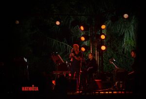 Ακούσαμε τον Γιώργο Μεράντζα να τραγουδά μοναδικά για τη “Δίκοπη Ζωή” και τέλος είδαμε τη σελήνη να ορθώνεται πάνω από τη σκηνή ενώ ο Χρήστος Θηβαίος της τραγουδούσε για τον Άμλετ της.