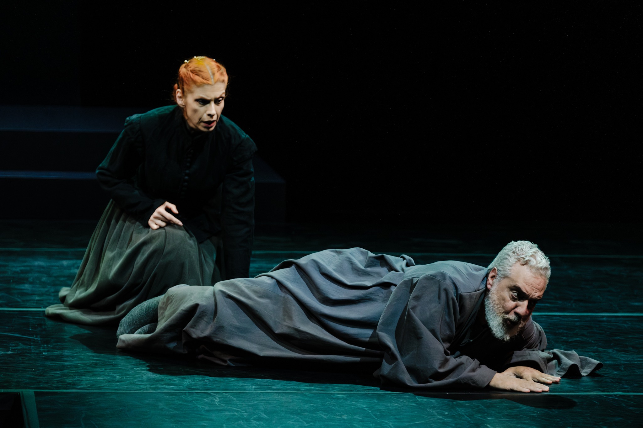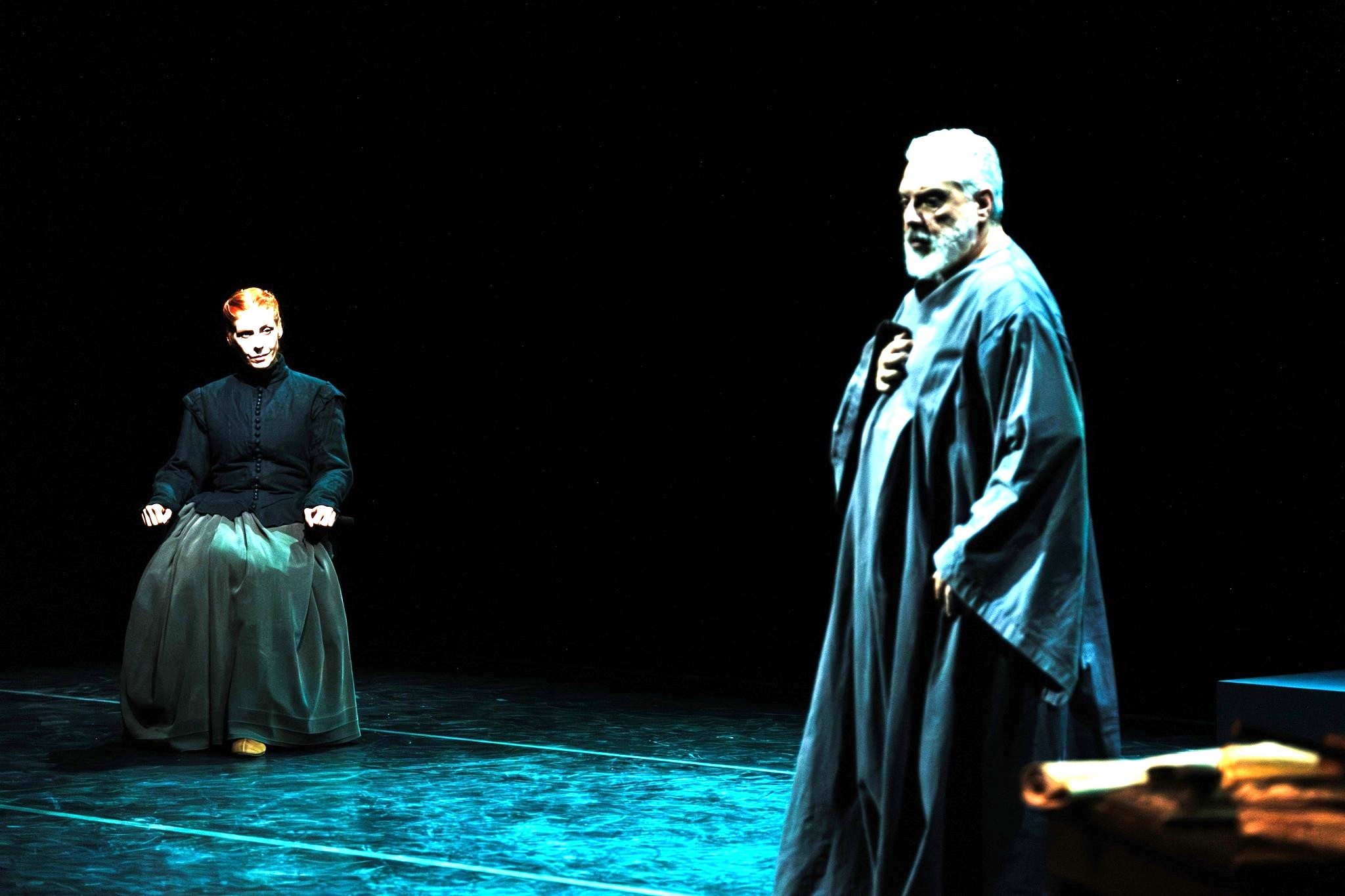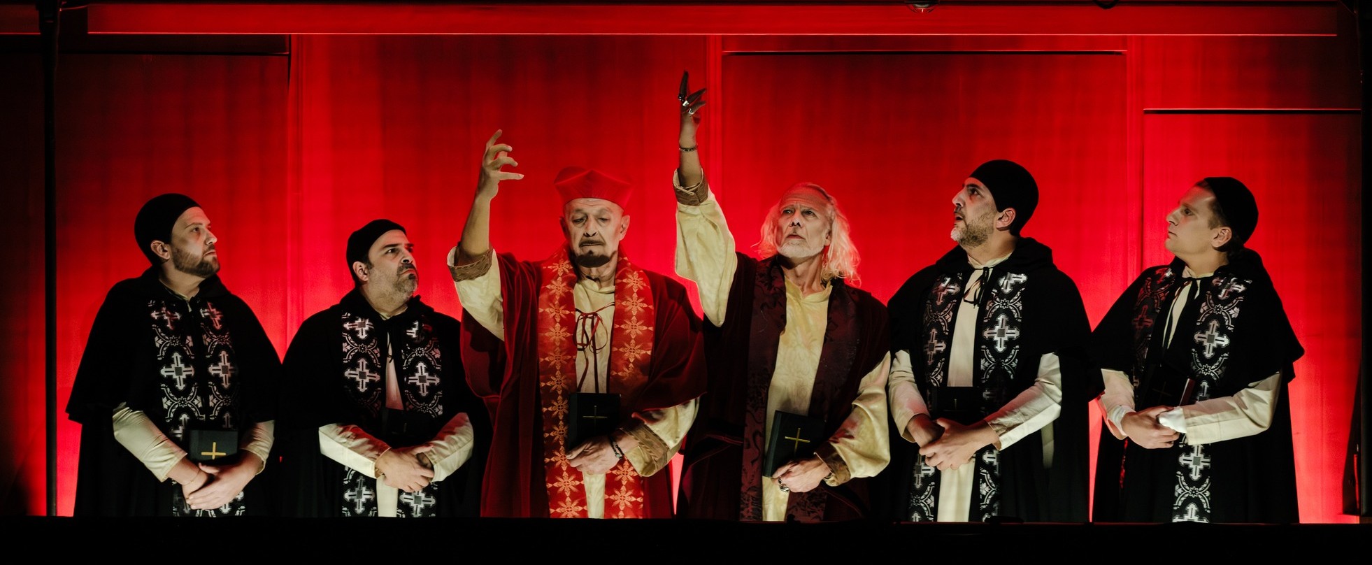Αλλά, και η πολυφωνική χορωδιακή μουσική έδωσε έναν εξαιρετικό τόνο στην παράσταση, αν και κατά τη γνώμη μου, η διάρκεια παρουσίασής της επί σκηνής, ήταν ελάχιστη. Η εξαμελής τρίφωνη χορωδία απέδωσε με μεγάλη επιτυχία και από μουσική και από υποκριτική άποψη τον ρόλο της, της Ιεράς Εξέτασης.