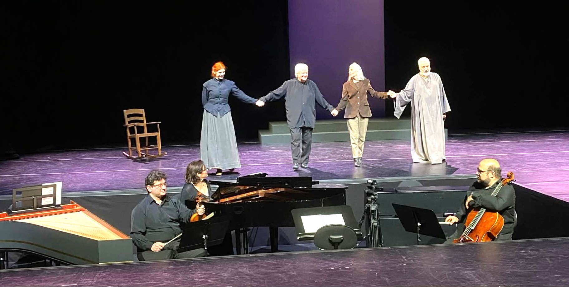 Η ενλόγω όπερα αποδόθηκε, επίσης, θαυμάσια από το μουσικό σύνολο, τρίο: Τριαντάφυλλο Λούκα (βιολί), Αστέριο Πούφτη (βιολοντσέλο) και Θάλεια Αθανίτη (πιάνο, τσέμπαλο, εκκλησιαστικό όργανο), υπό τη μαεστρική υπέροχη καθοδήγηση του ίδιου του συνθέτη. Η μουσική σύνθεση του Άλκη Μπαλτά γοήτευσε και συγχρόνως ενθουσίασε το πολυπληθές κοινό, το οποίο παρακολούθησε με ευλάβεια την παράσταση.