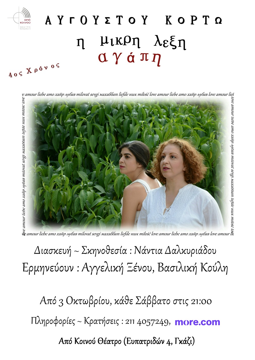 Ηλεκτρονική προπώληση: https://www.more.com/gr-el/tickets/theater/i-mikri-leksi-agapi-a-korto-4os-xronos/