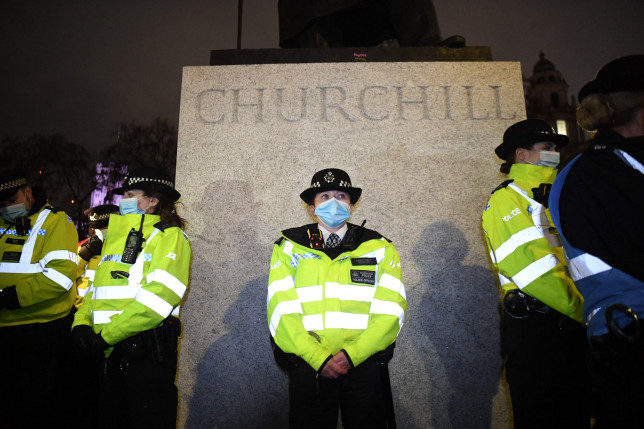 Tα αγάλματα προστατεύονται καλύτερα από τις γυναίκες στη Βρετανία – Κλοιός αστυνομικών γύρω από το γλυπτό του Τσόρτσιλ στο Λονδίνο