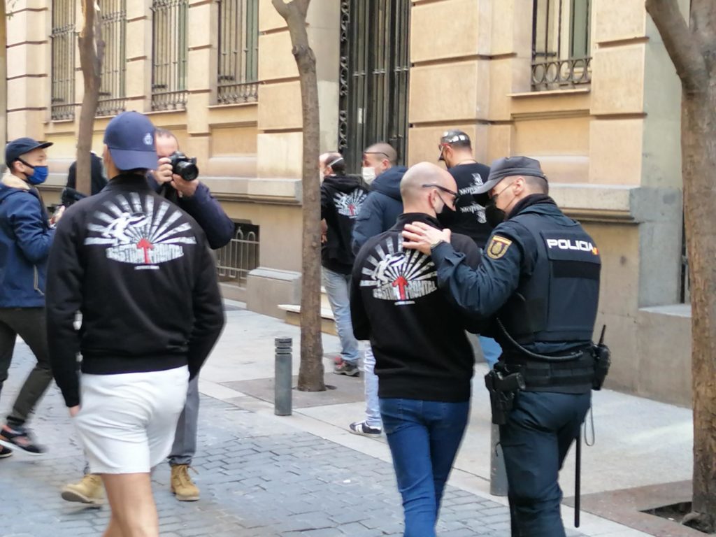 Με φιλικά χτυπήματα στην πλάτη αντιμετώπισε τους ναζί η αστυνομία της Μαδρίτης, πραγματοποιώντας παράλληλα επίθεση στους διαδηλωτές και συλλαμβάνοντας συνδικαλιστή.