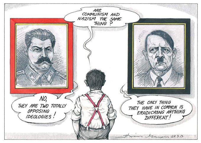 Αντικομμουνισμός με proficiency – Σκίτσο εξίσωσης Χίτλερ – Στάλιν στην αγγλόφωνη έκδοση της Καθημερινής