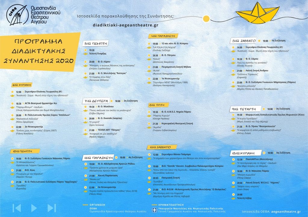 Δωρεάν θεατρικές παραστάσεις στο διαδίκτυο από την 32η Συνάντηση Ερασιτεχνικών Θιάσων Αιγαίου 2020