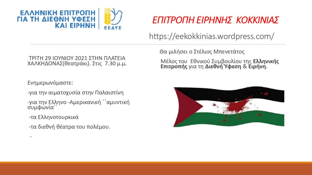 Επιτροπή Ειρήνης Κοκκινιάς – Εκδήλωση για τις εξελίξεις με τον Στ. Μπενετάτο