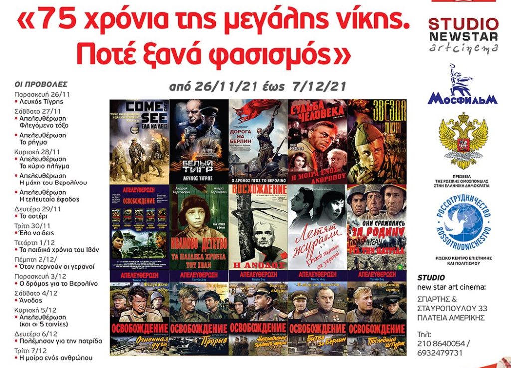 Με εξαιρετικές και ενδιαφέρουσες ταινίες συνεχίζεται το πρόγραμμα προβολών του ιστορικού κινηματογράφου Τέχνης STUDIO new star art cinema και τη βδομάδα από 25 Νοέμβρη έως 2 Δεκέμβρη 2021.