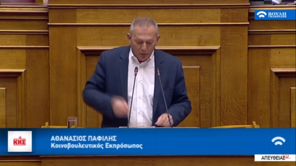 Καταπέλτης κατά της μαφιόζικης κλίκας στη διοίκηση της ΓΣΕΕ και των φασισταριών που τη στηρίζουν ο Θανάσης Παφίλης στη βουλή, μιλώντας για πρακτικές που είχαμε να δούμε από τη χούντα.
