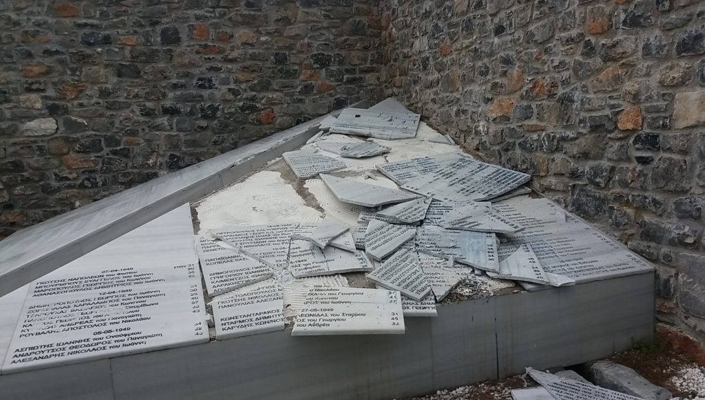 Θρασύδειλα φασιστοειδή ερπετά κατέστρεψαν το μνημείο του ΔΣΕ στο Καραβόσταμο Ικαρίας (ΦΩΤΟ)