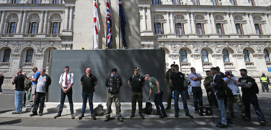 Σωματοφύλακες δουλεμπόρων – Βρετανοί φασίστες παρήλασαν για την “προστασία” των γλυπτών που απομάκρυναν διαδηλωτές